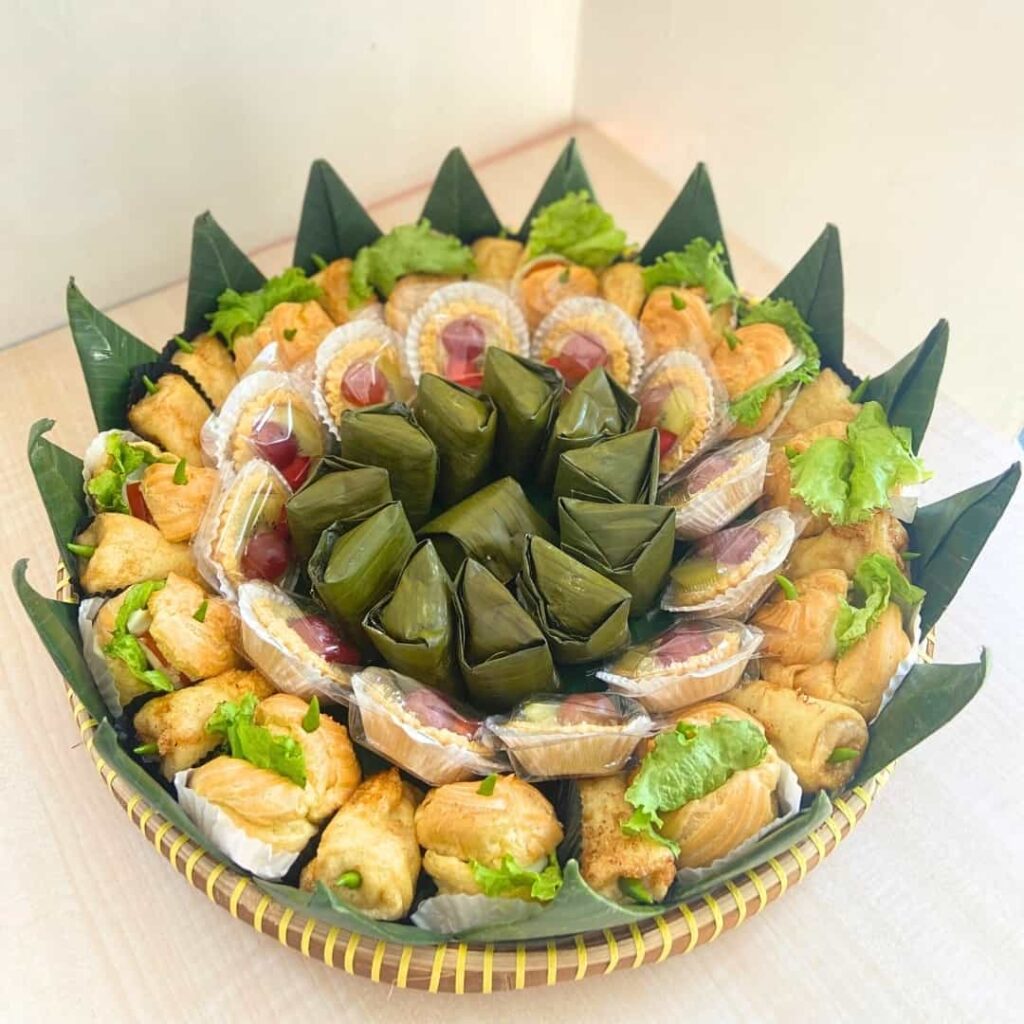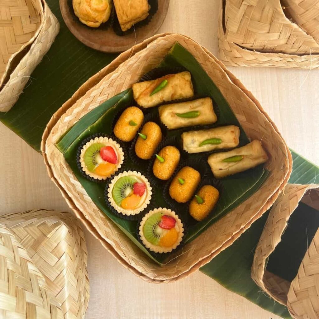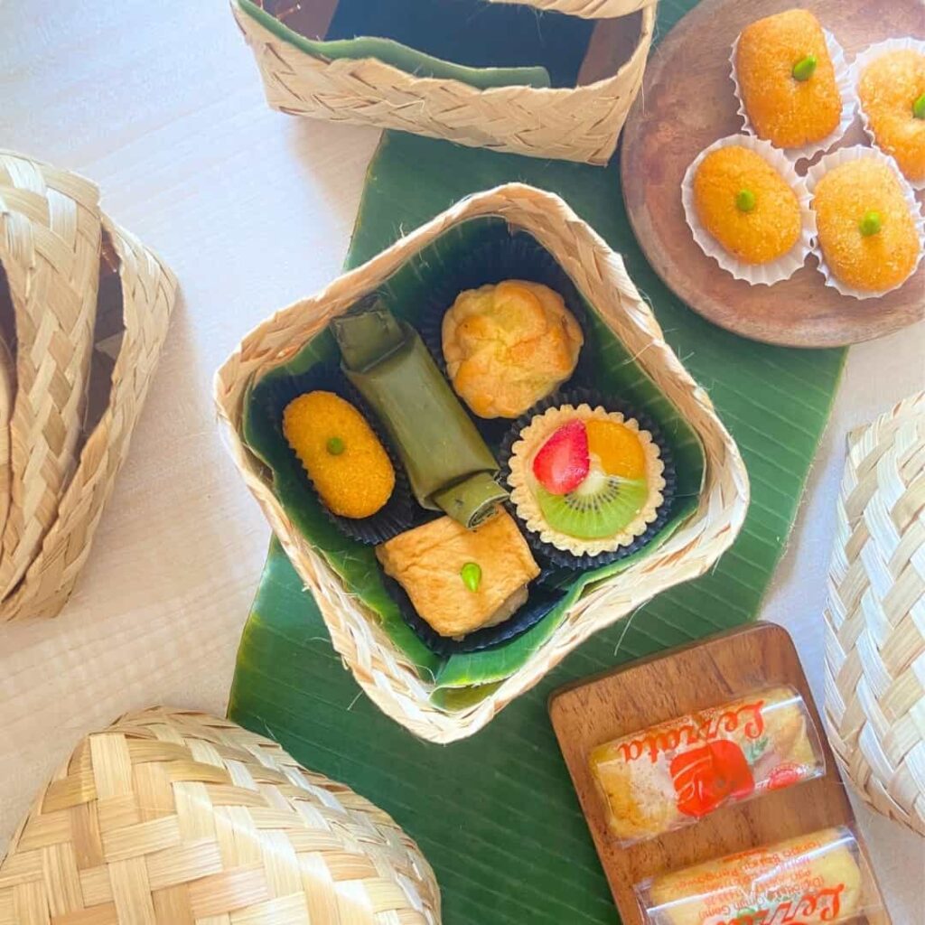 Kini kamu bisa memesan snack dan jajanan pasar favorit dengan tampilan lebih alami dan berkesan dengan besek bambu berbagai ukuran dan tampah anyaman cocok untuk sajian tumpeng, kue tradisional, atau snack isi banyak, kemudian dibalut daun pisang untuk tampilan estetik dan bernuansa Nusantara.